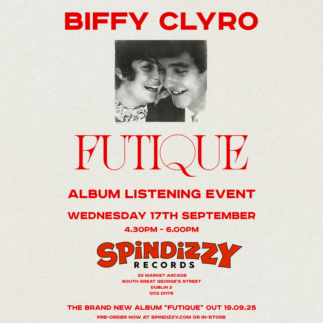 Join us at Spindizzy Records for an instore listening party for BIFFY CLYRO'S new album 'FUTIQUE'. Be the first to hear the whole album in advance. PLEASE NOTE: Albums will NOT be available for collection...