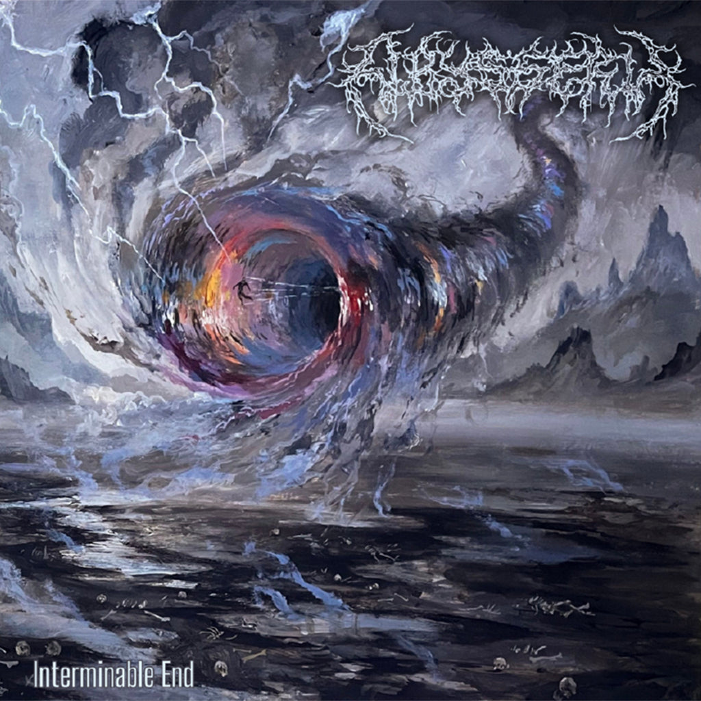 The release follows an unnamed pariah banished to an oppressive underworld, a metaphorical and metaphysical prison constructed by an unseen force. Interminable End captures this exile with suffocating intensity, weaving together elements of death-doom, dissonant black metal, and progressive death metal, layered with atmosphere and existential weight. Entirely written and recorded by Doherty, the album is an unflinchingly DIY effort sculpted through collaboration with some of extreme metal’s most respected names. Stewart’s commanding drumming and Piotrowski’s chilling vocal appearance elevate the record’s apocalyptic scope, while the immersive production by Zed delivers modern clarity without sacrificing weight.