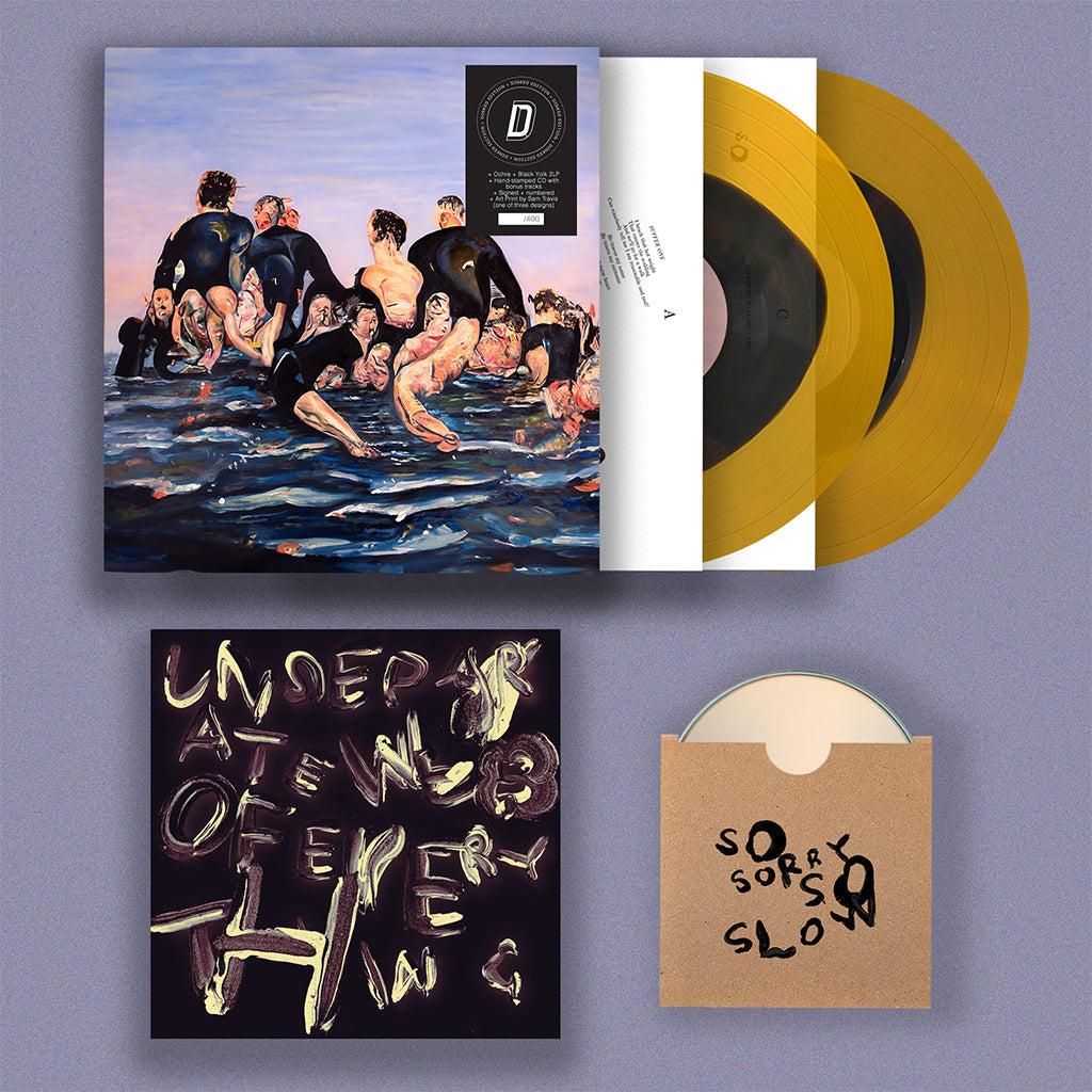 Recorded in bursts at studios across London and in the band members’ flats, at Konk, on the Isle of Wight and in Sussex, So Sorry is unambiguous in its evolution. Sonically, there are sparks of the arrhythmic brightness that afforded the band’s critically acclaimed debut album Gist Is its cult adoration, for fans of Arthur Russell and Meredith Monk, but with a blossoming, melancholic darkness often overhead. Piano sprees and luscious string sections appear like low-hanging stars on a night-time drive, whilst plunging vocal distortions and humming brass loops resurrect heavy limbs in a bad dream.
