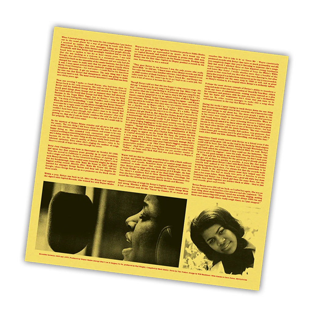 On this comprehensive self-titled double album, compiled by Mark Ainley, classic songs such as "Tell Me Like It Is", "Stand By Your Man", "(My Heart Is) Closed For The Season", "Willie & Laura Mae Jones" plus 18 heartfelt soul songs showcase Bettye's unique voice.