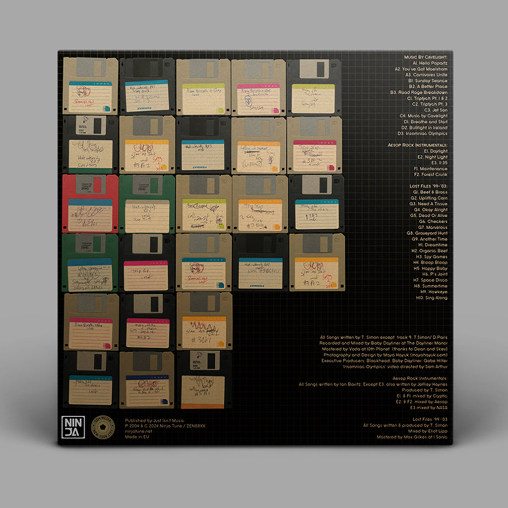 140g 4LP marbled forest green vinyl housed in a gatefold sleeve. Includes bonus Aesop Rock Instrumentals, plus previously unreleased Lost Files ‘99-’03. Download card included.