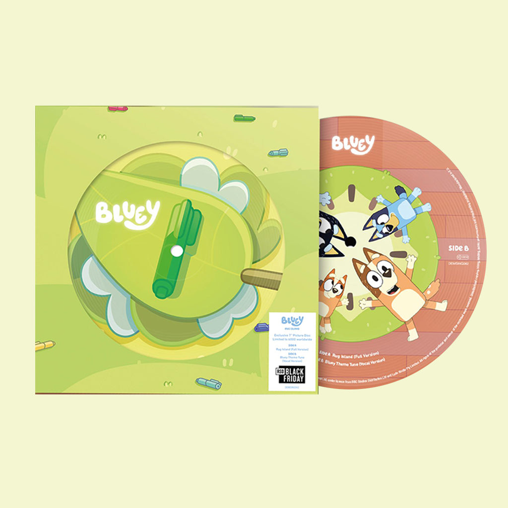 Demon Records present exclusively for Record Store Day Black Friday, a limited-edition 7" picture disc single of "Rug Island (Full Version)" from the newly released album 'Rug Island' According to Nielsen, Bluey is the No 1 most- watched series on streaming this year (2024) to- date among total viewers in the US, with over 35 billion minutes watched (584M hours) (Source: Nielsen Media Research)