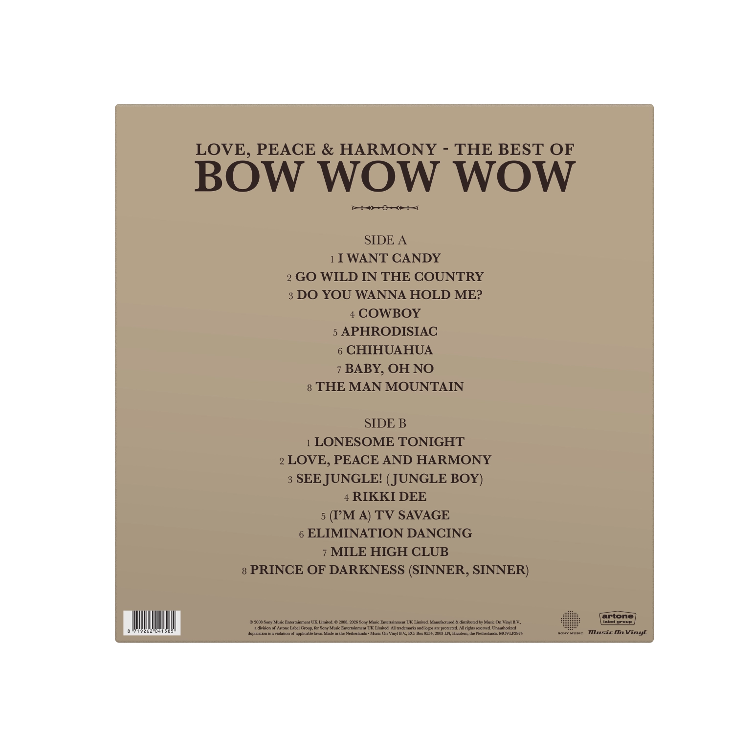 Love, Peace & Harmony - The Best of Bow Wow Wow is a compilation of the iconic new wave group Bow Wow Wow, released in 2008. The band was formed by Malcolm McLaren, the manager of the Sex Pistols. McLaren recruited members of Adam and the Ants to form the band, featuring 13-year-old Annabella Lwin on lead vocals. Over the next four years, the band dominated the British charts, with nine singles entering the UK Top 100. "Go Wild in the Country" and "I Want Candy" even made it into the top 10. Their success didn't stop in the UK; they also enjoyed success in Australia, the US and the rest of Europe. This version of the compilation includes the song “The Man Mountain”, which reached the top 10 in Belgium and the Netherlands.