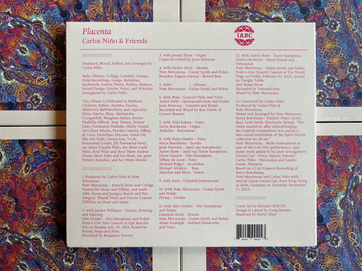 Placenta is the fourth collection of broadly imaginative and highly collaborative Carlos Niño & Friends music released on International Anthem in the last four years. It is also the first new music to be released by Carlos Niño & Friends following the November 2023 release of André 3000’s New Blue Sun – an album which Carlos produced alongside André, while co-writing, co-creating/playing, and co-mixing every song.