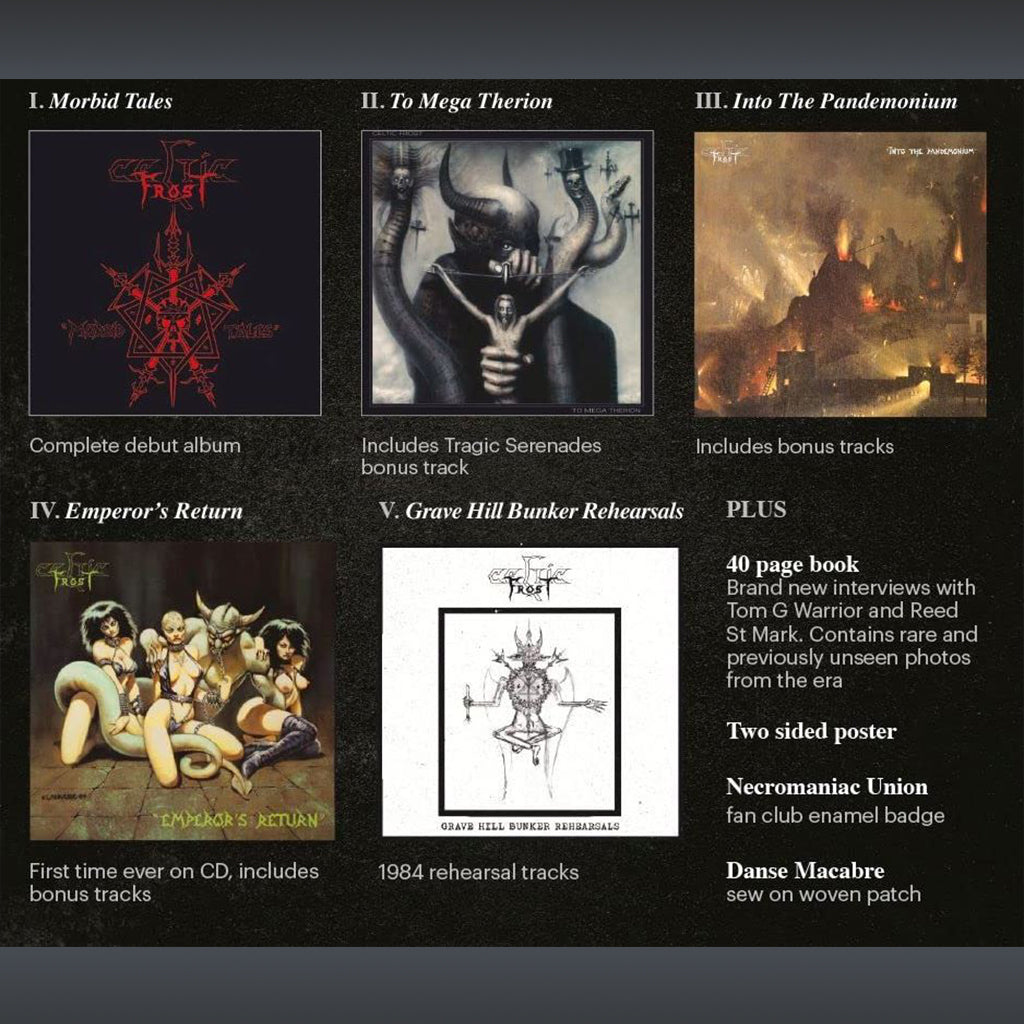 40-page book containing new sleeve notes, interviews with Tom Gabriel Warrior and Reed St. Mark. Contains rare and previously unseen photos.