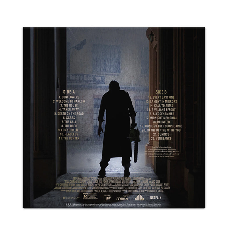 In partnership with Milan Records, TEXAS CHAINSAW MASSACRE (SOUNDTRACK FROM THE NETFLIX FILM) by GRAMMY Award®-winning saxophonist, multi-instrumentalist, songwriter and composer Colin Stetson (Hereditary, Color Out Of Space) features music written by Stetson for the long-awaited sequel to the 1974 horror classic. The 23-track collection finds Stetson expertly layering a multitude of sounds and instruments to create a hauntingly brutal, industrial soundscape.