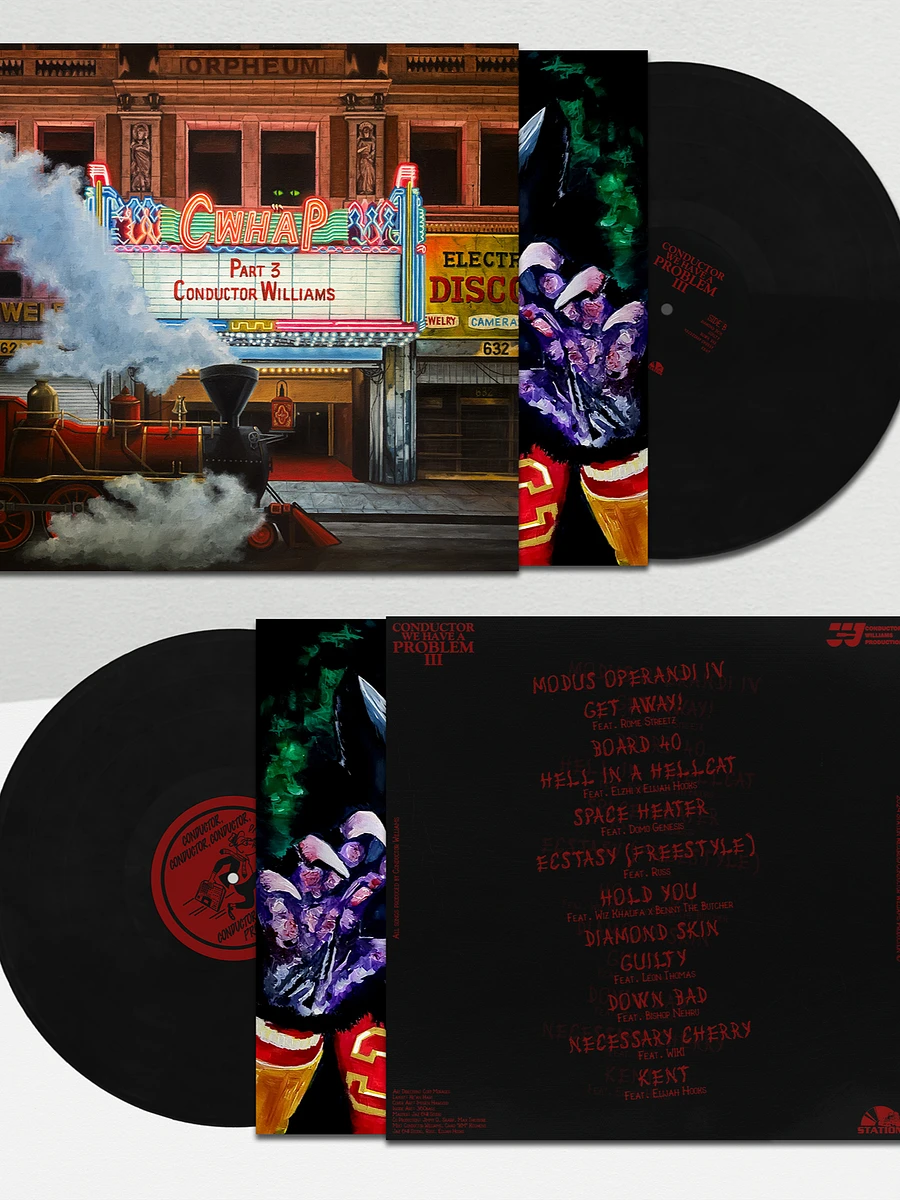 Third installment in the "CONDUCTOR WE HAVE A PROBLEM" series. Features Rome Streetz, Elzhi, Elijah Hooks, Domo Genesis, Russ, Benny the Butcher, Wiz Khalifa, Leon Thomas, Bishop Nehru, and Wiki. On 180 gram black vinyl.