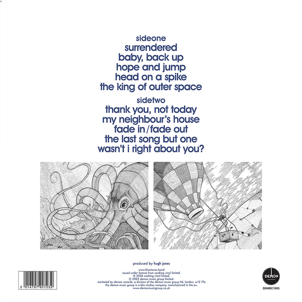Released in October 2006, The Bluetones was the band’s fifth album and reunited them with Hugh Jones, producer of their first two albums. It features the singles “My Neighbour’s House”, ”Head On A Spike” and “Surrendered”. Now issued on vinyl for the first time ever (on translucent blue vinyl), the inner sleeve features all the lyrics and credits, photos, and another beautiful drawing by Scott Morriss.