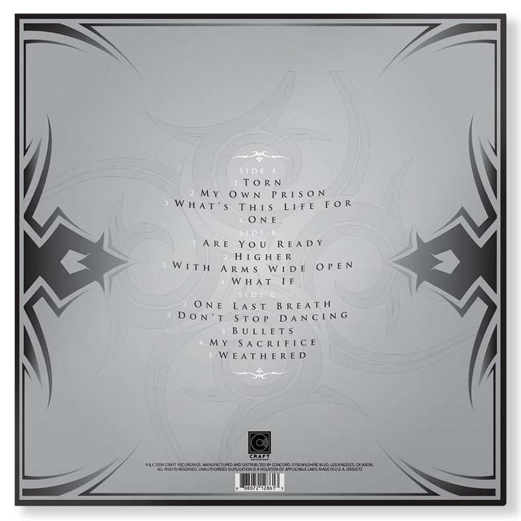 An arsenal of global smash hits from Grammy-winning hard rock titans Creed. This fourteen track collection spans the band's multi-Platinum studio albums My Own Prison, Human Clay and Weathered, including the singles “Higher,” “With Arms Wide Open,” “One Last Breath,” “My Sacrifice,” and more. The 2-LP set features an etched Side-D.