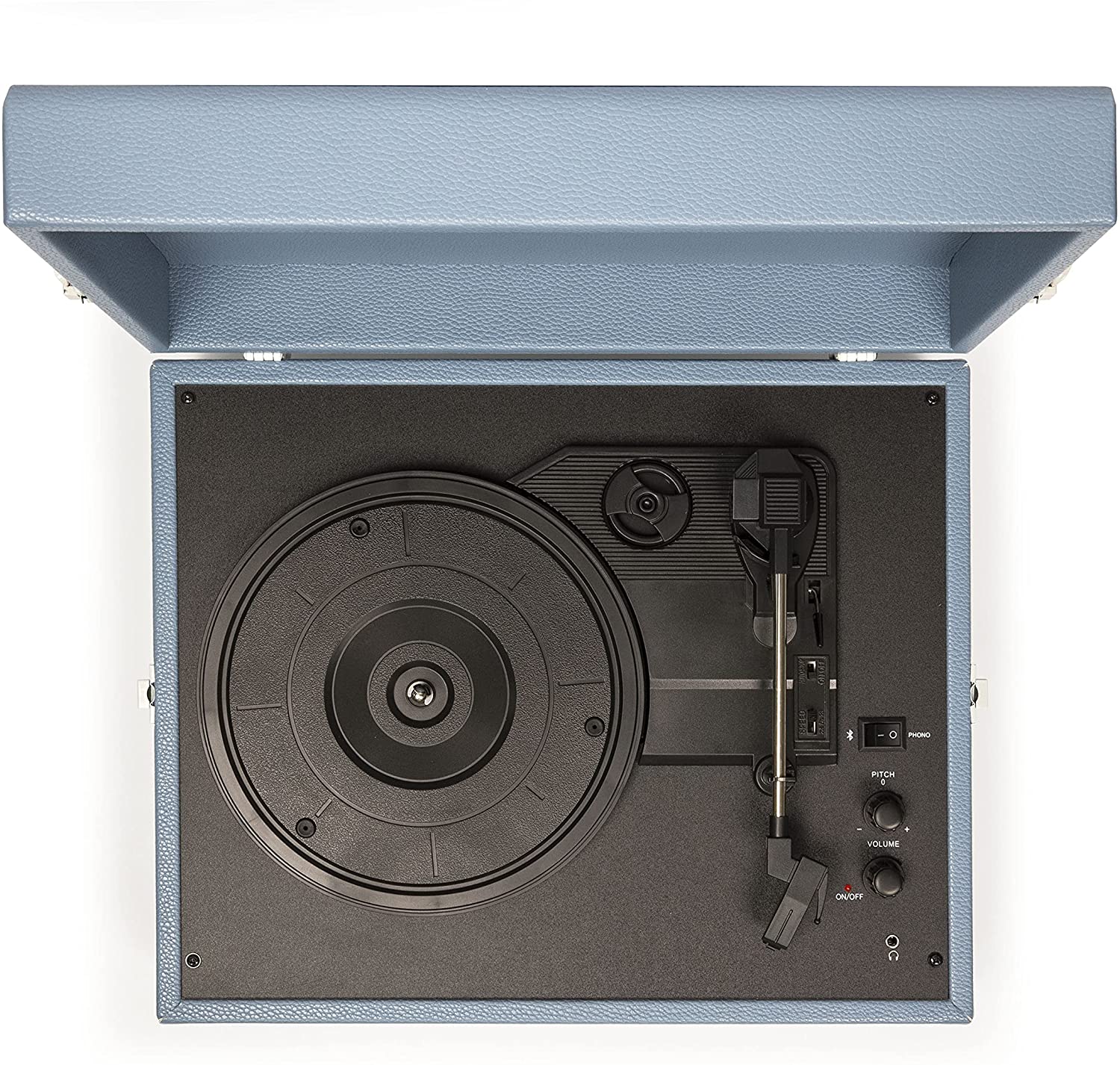 Portable Record Player With Bluetooth & Built-in Speakers - Washed Blue Colour