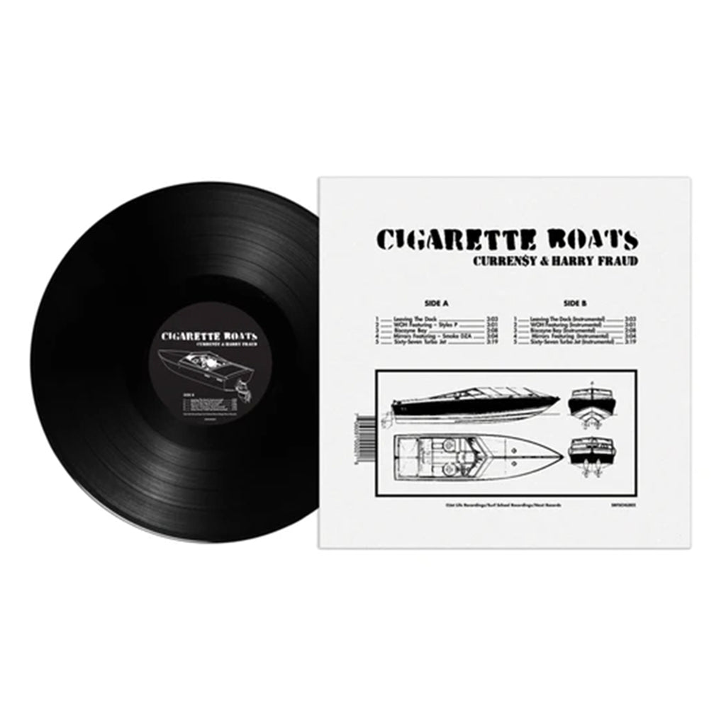 Now repressed on black vinyl. Originally released on July 9th, 2012, only via Soundcloud, Cigarette Boats is NOW available on wax again! When Curren$y (aka Spitta Andretti) & Harry Fraud collab, they create classics, something which is most definitely evidenced on ‘Cigarette Boats’.