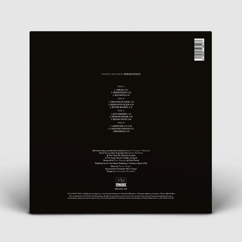 His sophomore solo album Persistence is an exemplary culmination of the momentum Maunick has built since his 2019 debut Macumba Quebrada, which earned support from Moodymann, Benji B, Gilles Peterson, Ron Trent, Palms Trax, Derrick Carter and Moxie to name just a few. Since collaborating with Shy FX for his first ever release at the age of fifteen (a now impossible to find single sided jungle acetate), Maunick has remained embedded in the fabric of the culture, from early work for the legendary Talkin' Loud label to notching credits with Terry Caliier, Paul Weller, Ski Oakenfull, Brenda Russell, and his father's legendary Brit-funk outfit Incognito. And for almost two decades he's served as producer for a long string of classic and future-classic Far Out albums, most recently Alex Malheiros' Tempos Futuros. As on his previous Far Out opuses (most recently the Musica Encantada EP), Persistence sees Maunick continue to playfully use foundations of traditional afro- brazilian rhythms, heard in the sultry samba swing of 'Arraiá', the pulsating batucada enveloping the bassy synth stabs in "Remnants of Joy", and spectral cuicas throughout the blissfully bumping 'Illusions'. But going beyond his trademark nods to Brazil, he reflects on his junglist roots with the emotionally charged 'Love Is Gone', and flexes his deep house muscles with the late night magic of 'Just Deserts' and 'Addicted'.