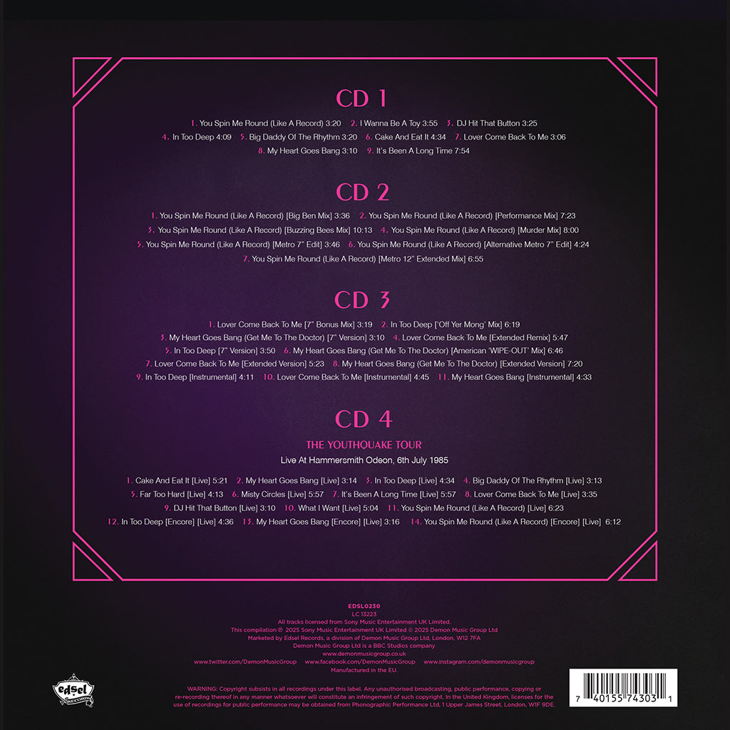 • CD1 contains the original album, whilst CD2 is dedicated to ‘You Spin Me Round (Like A Record)’ with a variety of mixes and alternate versions.