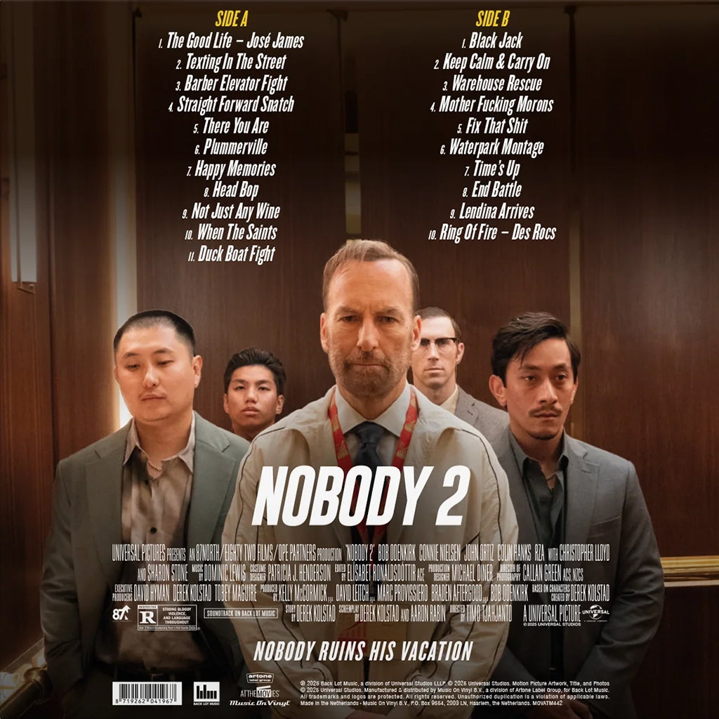 LP - Limited Edition 180g Turquoise Colour Vinyl. Soundtrack to the action blockbuster sequel starring Bob Odenkirk, Connie Nielsen, Christopher Lloyd and Colin Hanks a.o.