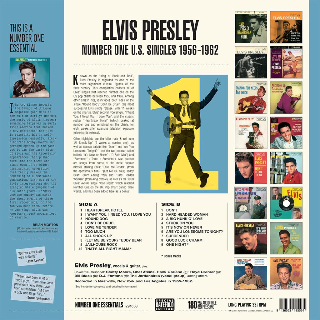 Known as the "King of Rock and Roll", Elvis Presley is regarded as one of the most significant cultural figures of the 20th century. This compilation collects all of Elvis' singles that reached number one on the US pop charts between 1956 and 1962.