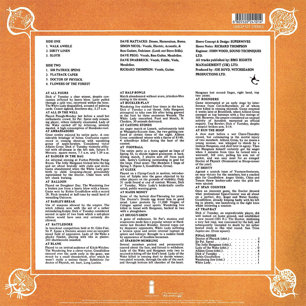 Guitarists Richard Thompson and Simon Nicol took vocal leads with Swarbrick and, with new bassist Dave Pegg joining drummer Dave Mattacks, the group made Full House, released in July 1970. Picking up where its predecessor left off, and again recorded with Joe Boyd at London's Sound Techniques, the album continued the standards set by their previous four albums. Four of the seven songs on Full House were adapted from traditional folk melodies, such as Dirty Linen and Sir Patrick Spens, while of the originals, Thompson and Swarbrick's nine-minute opus Sloth gave the group one of their all-time anthems. The sleeve sent up their new role as ambassadors of the rustic by inventing a string of traditional British games that didn't really exist.