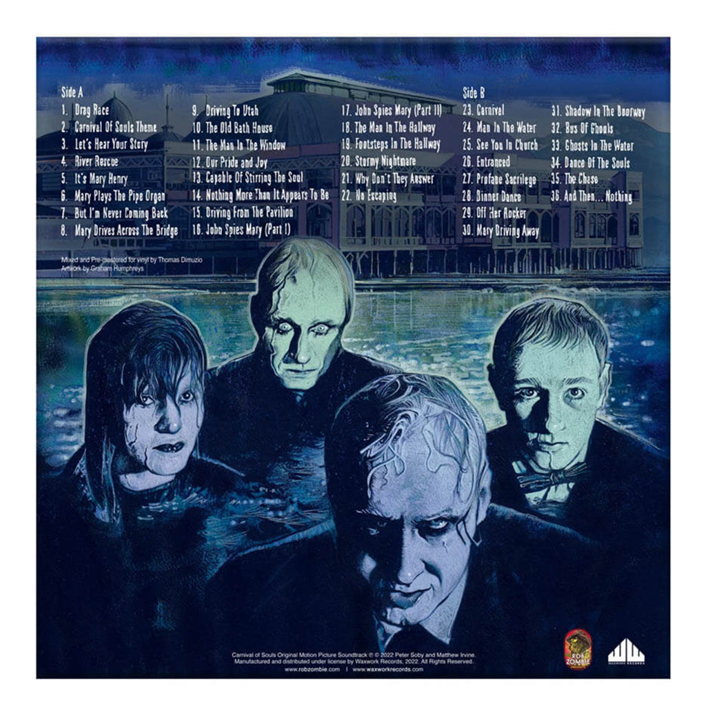 It features an organ score by Gene Moore. Employing various guerrilla filmmaking techniques and shot on a shoestring budget of only $33,000, Carnival of Souls has become a cult classic and has been praised by critics and film scholars for its cinematography and its stark, foreboding atmosphere. Waxwork worked closely with the owners of the original Carnival of Souls film elements which have been restored by and archived in the vaults of the Academy of Motion Picture Arts and Sciences.