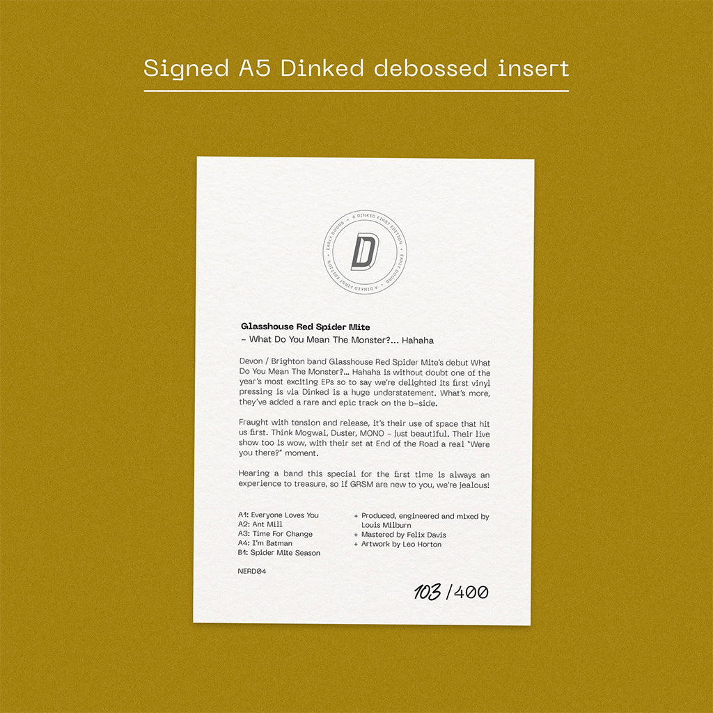Glasshouse Red Spider Mite share their much awaited debut EP ‘What Do You Mean The Monster?… Hahaha’ on its first vinyl pressing.