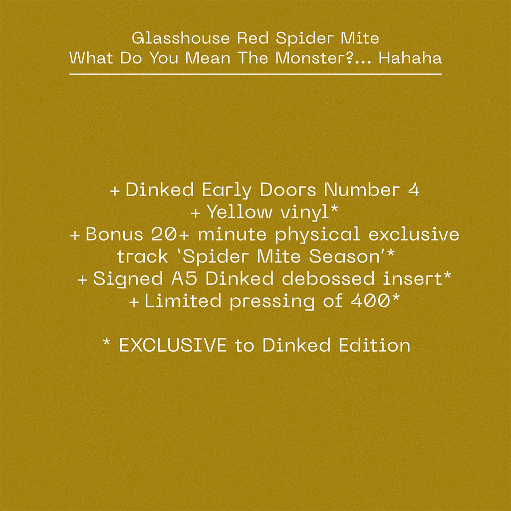 GLASSHOUSE RED SPIDER MITE - What Do You Mean The Monster?... Hahaha - 12'' EP - Yellow Vinyl - Dinked Early Doors Edition #04 [DEC 19]