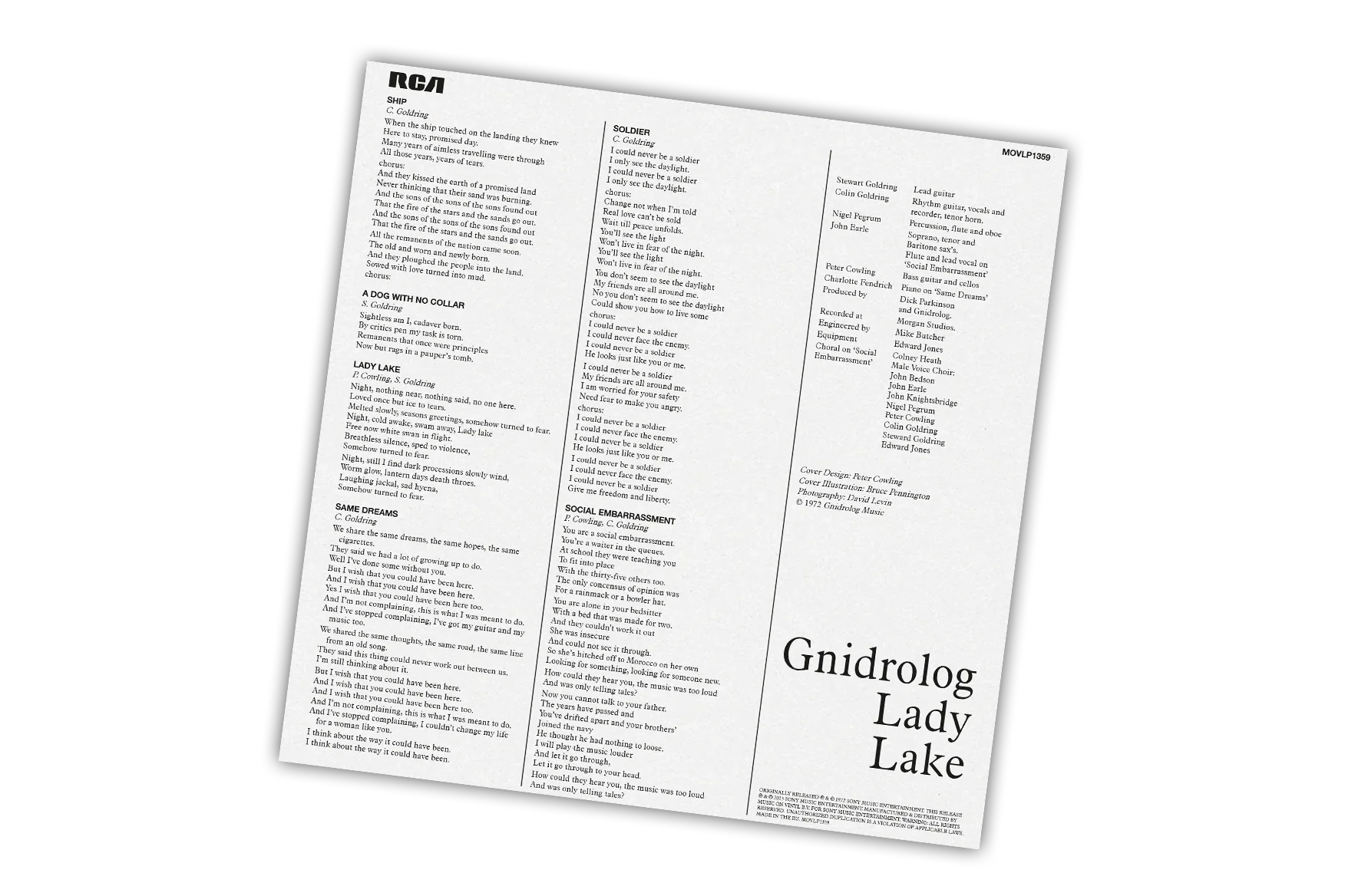 Gnidrolog was originally formed in 1969 and signed to RCA Records in 1971. Following on the heels of the album in spite of Harry’s Toenail, Lady Lake featured a lineup of Colin Goldring, Stewart Goldring, Peter Mars Cowling, and Nigel Pegrum. The album saw Gnidrolog continue to develop their unique form of progressive rock, which had critics compare the band to cohorts such as Gentle Giant and Van Der Graaf Generator.