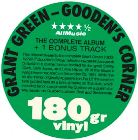 High-definition audiophile pressing - 180g premium vinyl - This special edition presents the complete Grant Green LP 'Gooden's Corner' (1961) with an additional track recorded at the same session with saxophonist Ike Quebec joining the quartet on the seldom heard standard, Count Every Star by Bruno Coquatrix and Sammy Gallop.