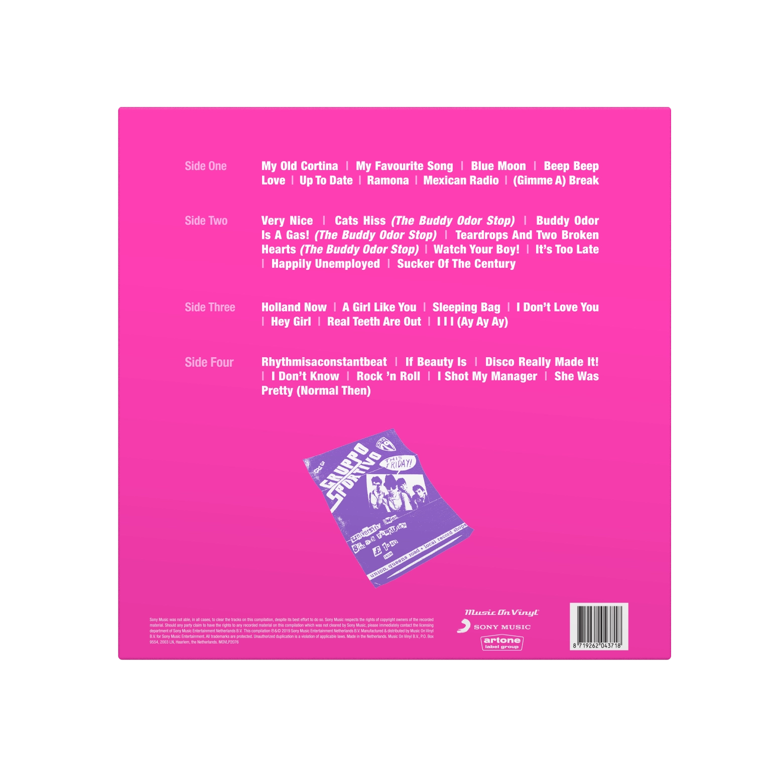 Featuring standout songs like “Beep Beep Love,” “My Old Cortina,” “Up to Date,” and cult favorites from The Buddy Odor Stop, Vinylly! captures the band’s golden era with crisp remastered sound and a beautifully designed sleeve and 4-page booklet. A complete overview of a group that defined an era with their playful lyrics, sharp arrangements, and unmistakable charm.