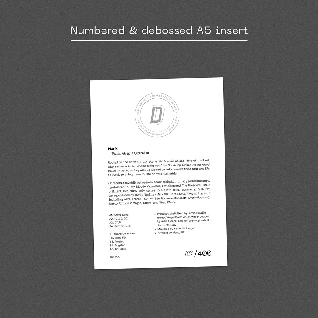 HANK - Twist Grip / Spiralic - LP - Crystal Clear Vinyl - Dinked Early Doors Edition #03 [NOV 14]
