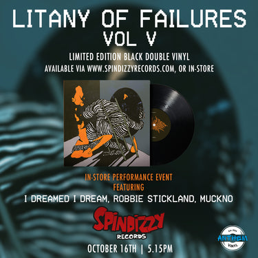 To celebrate the release of A LITANY OF FAILURES : VOL.5 compilation Spindizzy Records welcomes I DREAMED I DREAM, ROBBIE STRICKLAND & MUCKNO for an exclusive in-store performance.