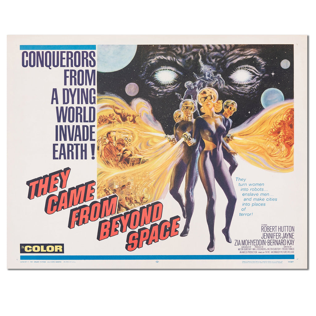 As is often the case with vintage b-movies, it's the poster for the 1967 Amicus production of They Came From Beyond Space that draws you in. The curvaceous space woman and her menacing alien team fi ring upon a terrorised planet Earth suggests more action than perhaps the fi lm delivers, but it does the job.