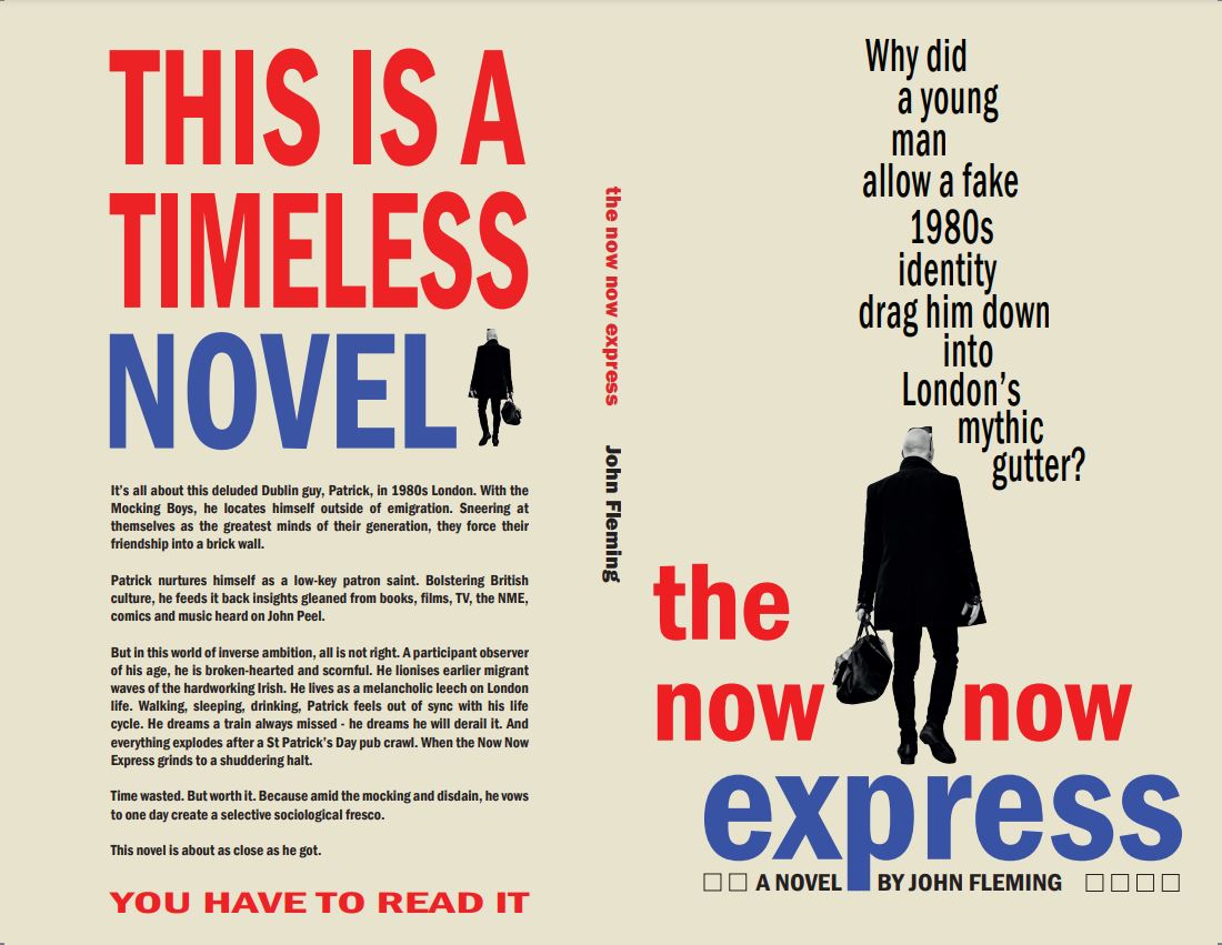 The Now Now Express novel is a newly published novel set in London in the 1980s among a batch of smart alec Dublin migrants whose friendship is coming unstuck. They spurn the economics that underpin most of the diaspora and adhere to something more existential, underground and culturally cynical.
