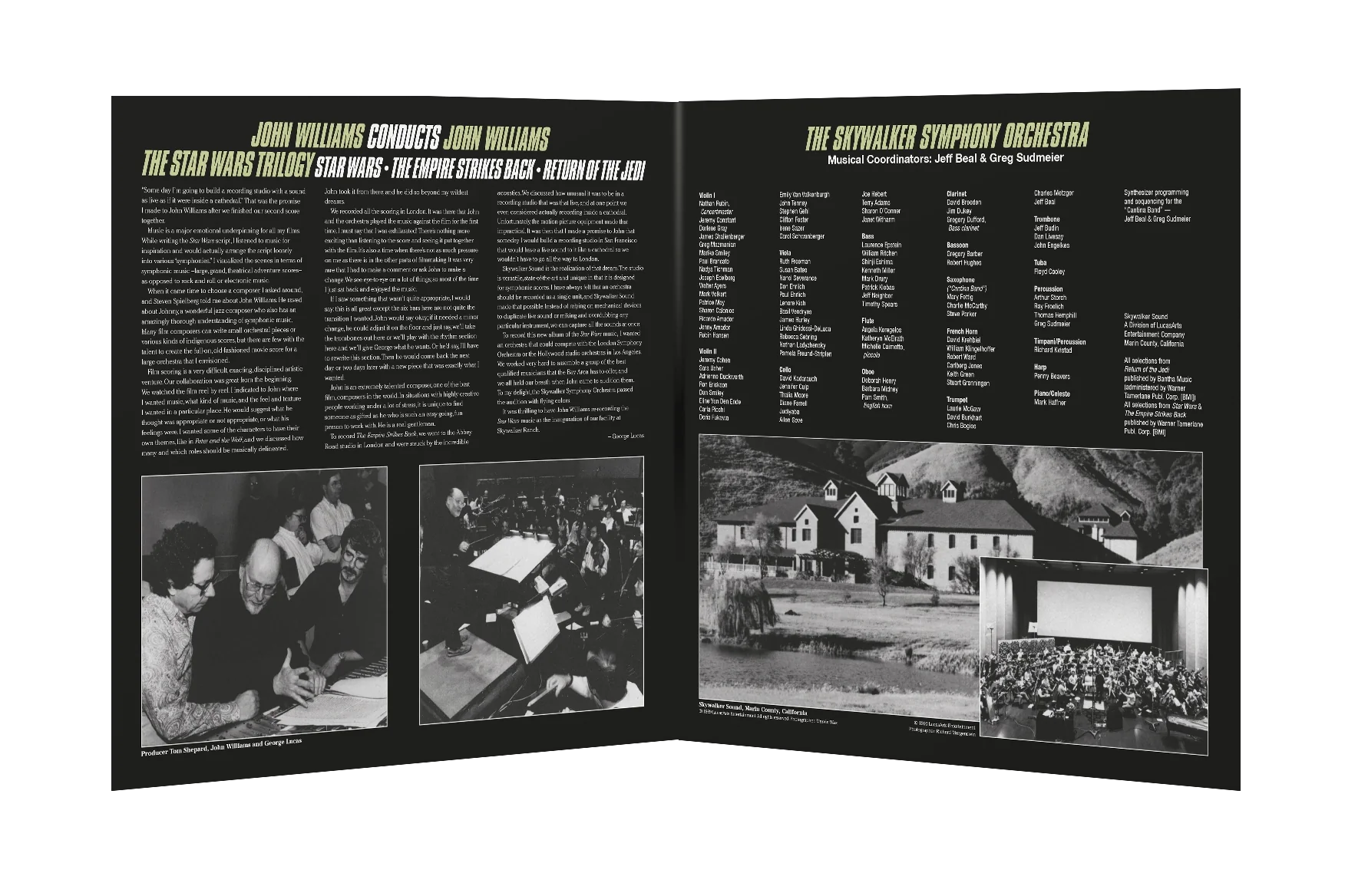 In 1990, John Williams created the compilation album John Williams Conducts John Williams – The Star Wars Trilogy, which features 13 of his most memorable tracks from the original Star Wars Trilogy. All performed by the London Symphony Orchestra, it features the iconic “Main Theme” and “Throne Room / Finale” from Episode IV – A New Hope, “The Imperial March” from Episode V – The Empire Strikes Back, and “Luke And Leia”