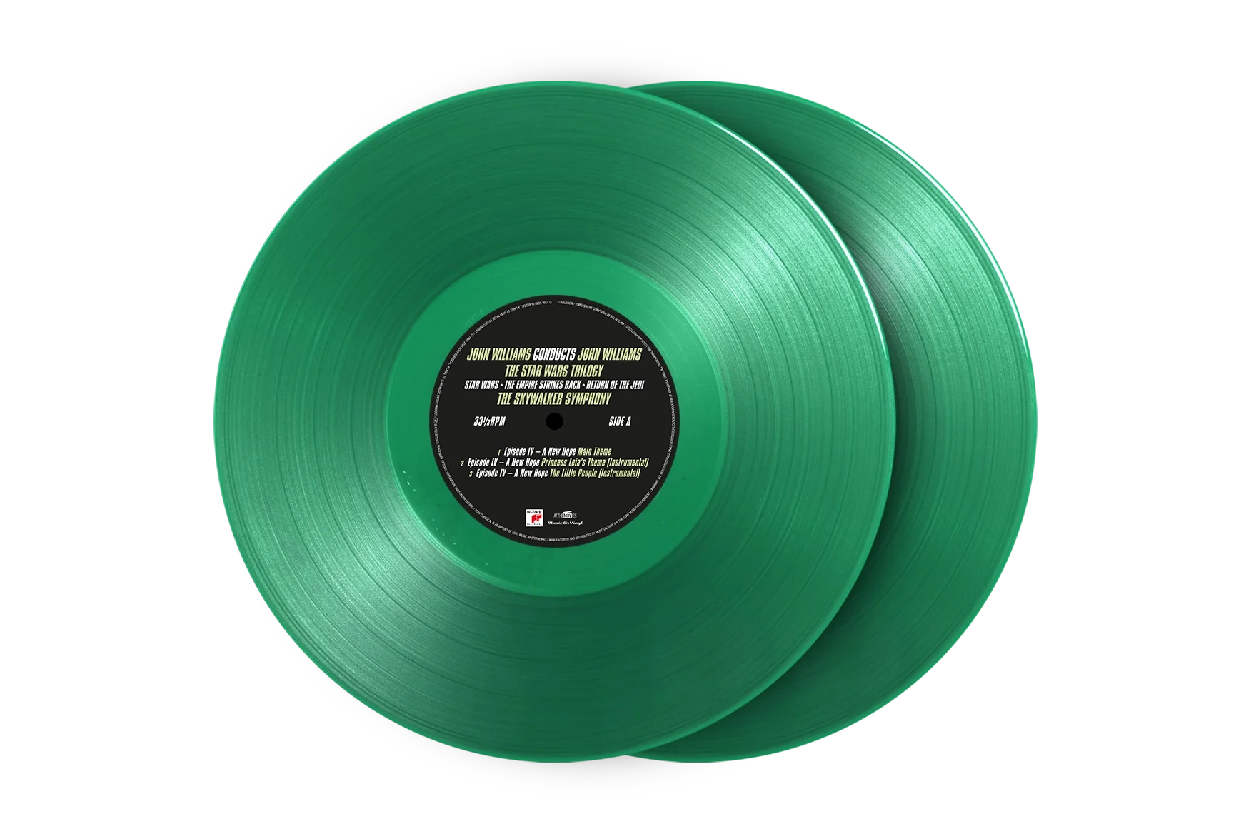 John Williams Conducts John Williams – The Star Wars Trilogy is available on vinyl for the very first time as a limited edition of 1500 individually numbered copies on translucent green coloured vinyl. This 2LP is housed in a gatefold sleeve with liner notes by the creator of the Star Wars franchise, George Lucas.