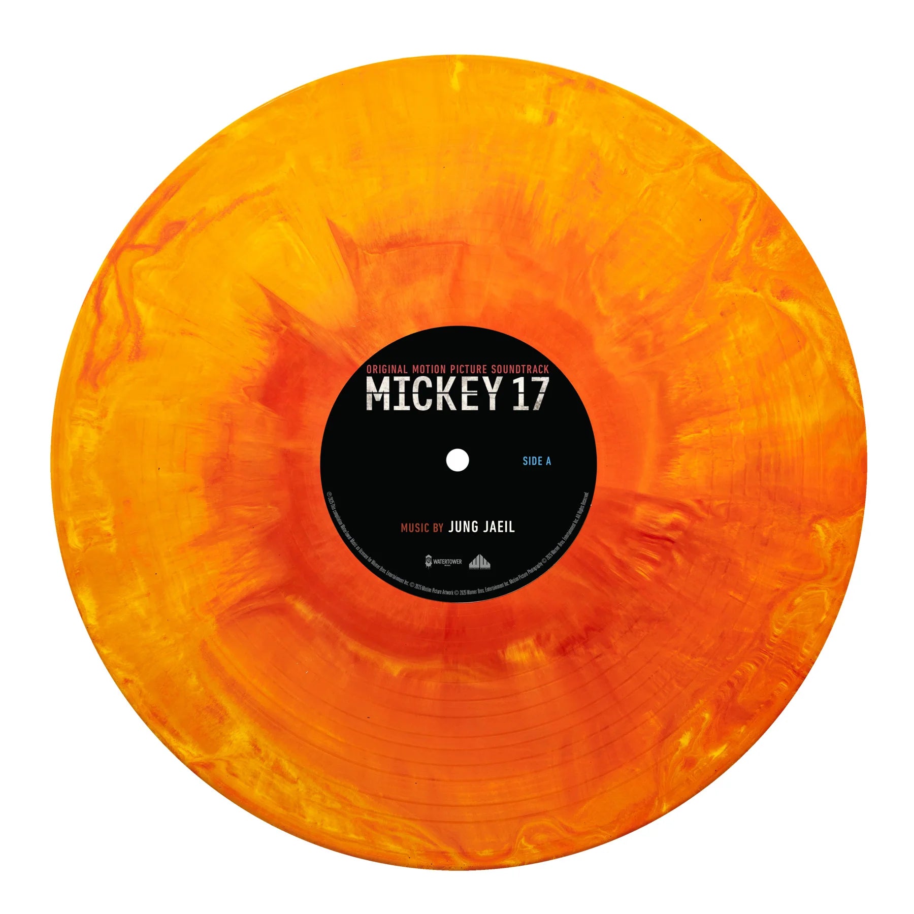 Waxwork Records is excited to present the debut vinyl release of MICKEY 17 Original Motion Picture Soundtrack as a deluxe coloured LP featuring "Fire Hand Pour" coloured vinyl, heavyweight packaging on reverse board, and an 11"x11" art print insert.