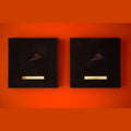 Kate says: “The idea was to create a hybrid of an album and a piece of artwork you could hang on the wall. They’re based on something I designed for an auction for the charity War Child”. (In 1993 Brian Eno asked Kate to contribute to an auction for War Child, and she came up with the idea of two identical box frames, each containing a flashing red LED with text on brass plaques).