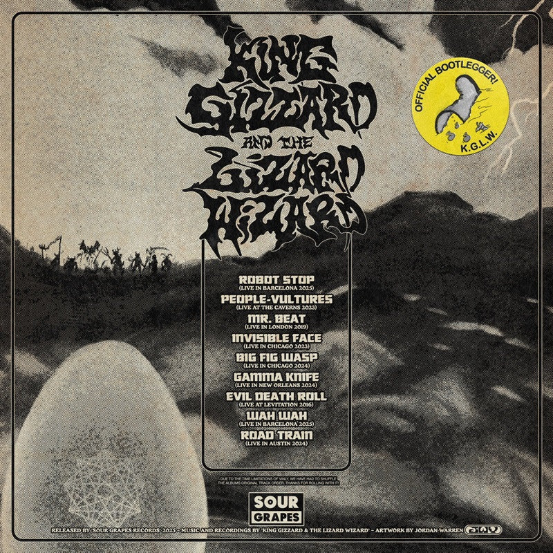 Sour Grapes Records piece together the live LP of Nonagon Infinity on vinyl, with tracks made up of their sell outs shows across the years. The album features some of the best and most raucous live outings (Chicago, Barcelona, London) from each of the songs available on the infamous King Gizzard bootlegger series, one of the first of its kind.