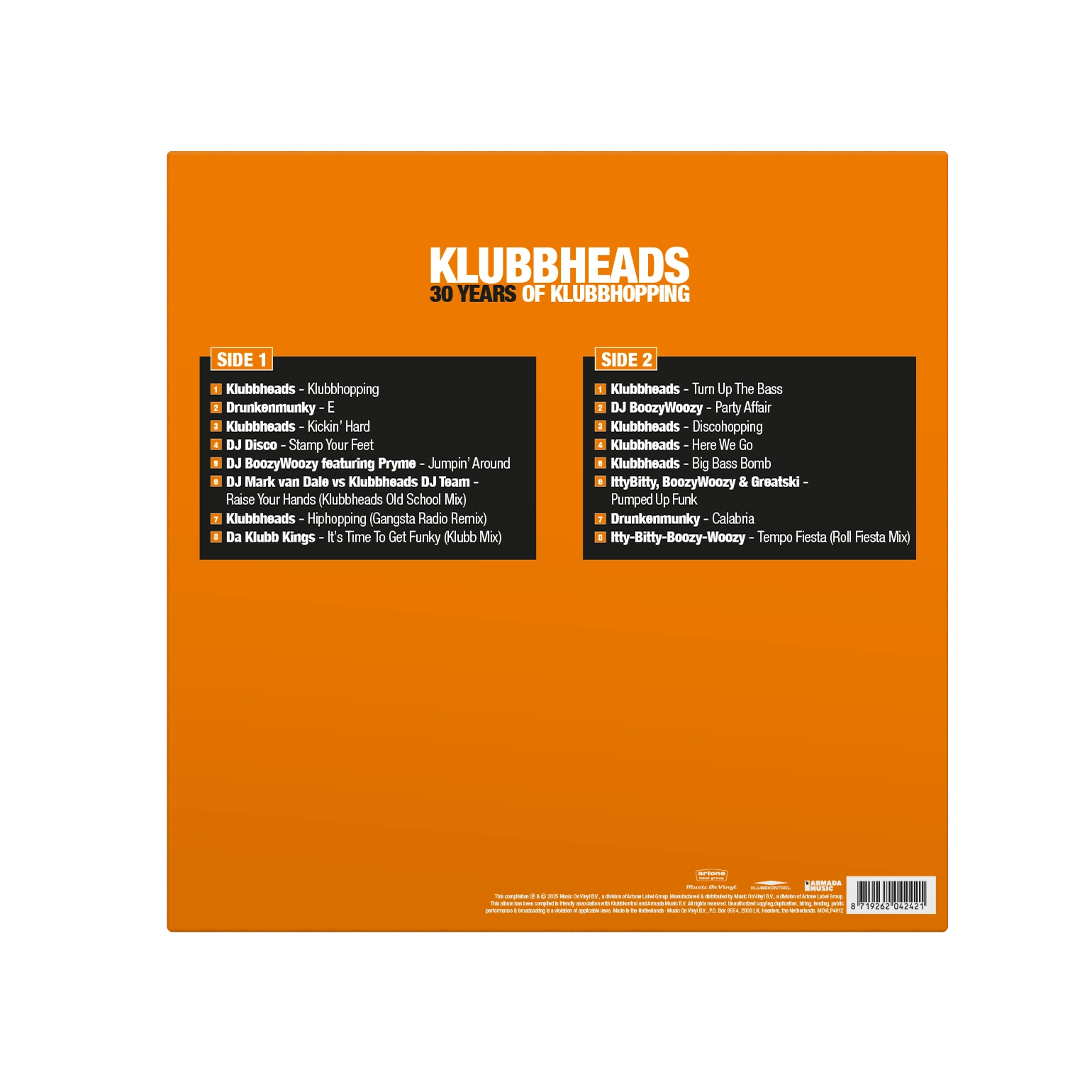 Celebrate three decades of dance music history with 30 Years of Klubbhopping – the ultimate Best Of collection from the legendary Dutch DJ/producer team, Klubbheads. Known for their unstoppable beats and countless club anthems, Klubbheads have shaped the sound of global dancefloors with releases under many aliases, including Drunkenmunky, Da Klubb Kings, Itty-Bitty-Boozy-Woozy, DJ Disco and others.