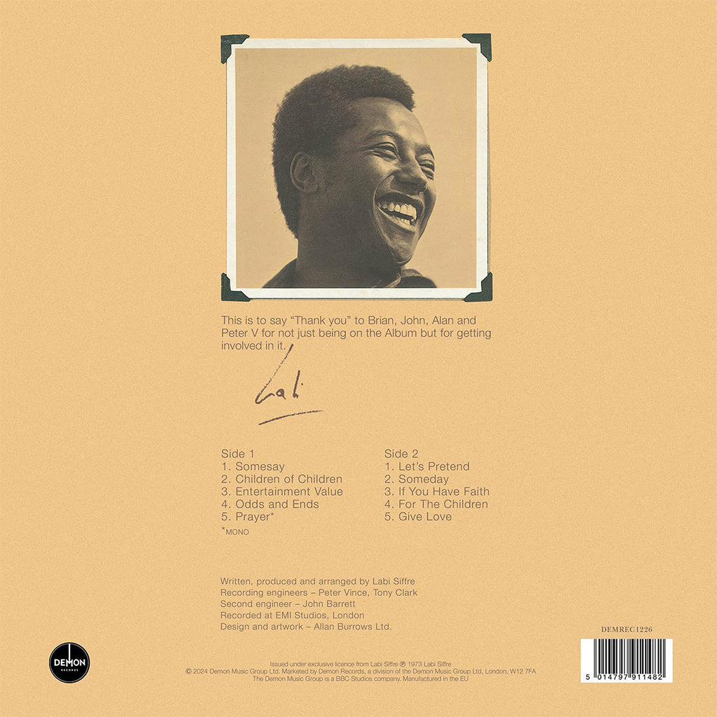 Released in 1973, Labi’s fourth album (“the album of which I am proudest”) includes two epic songs in “Children Of Children” and “Let’s Pretend”, songs he says he was “provoked” into writing.