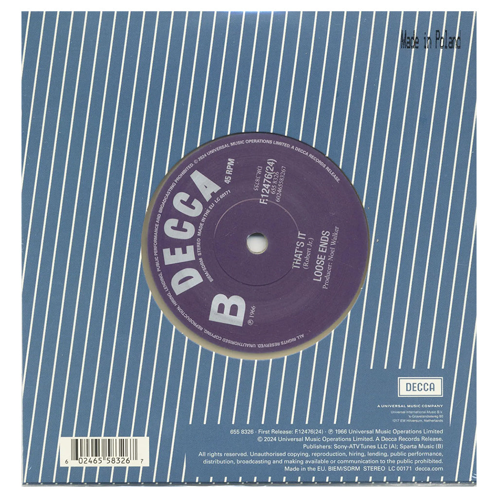 In response to demand from collectors, fans and DJs, Decca Records announces the re-issue of two highly sought-after 7-inch singles (the other being John Mayall & The Heartbreakers - "Crawling Up A Hill"). This release resurrects a rare single from the sixties mod era, complete with their original B-sides.