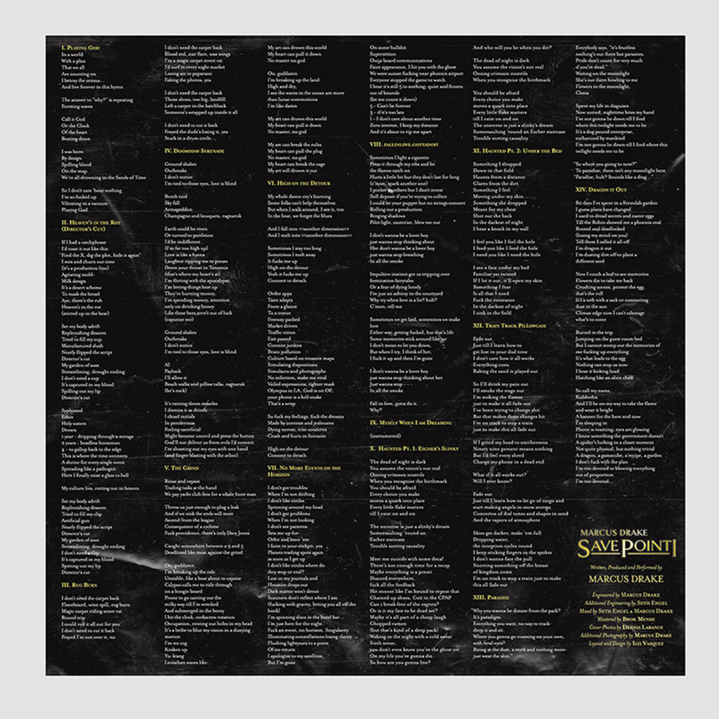 After years of preparation, Marcus Drake emerges from the basement networks of the resistance underground to claim the first save point along his quest ahead. Welcome to Save Point 1, a universe where popular forms of the past collide at warp speed with Marcus’s mutant inspirations to produce sounds and genres hitherto unknown. Written, Produced & Performed by Marcus Drake.