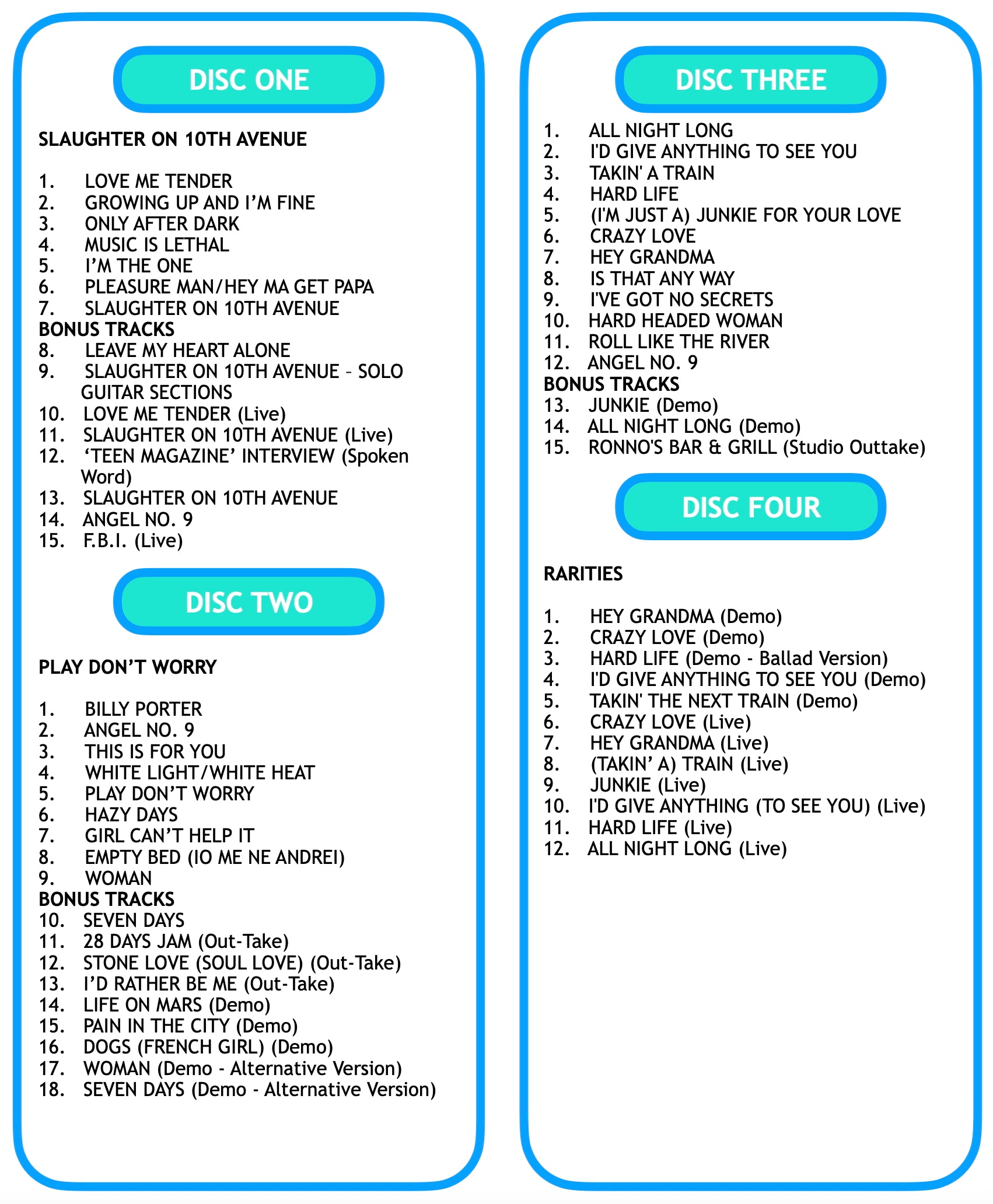 A 4-CD set, ‘Only After Dark’ chronicles his peripatetic solo work during the rest of the seventies after his split with Bowie, with those two official albums joined by B-sides, alternative versions, outtakes and a plethora of unissued-at-the-time studio recordings (including a handful with Guam, the backing band for Bob Dylan’s legendary 1975 Rolling Thunder tour) and various highlights from his live shows.
