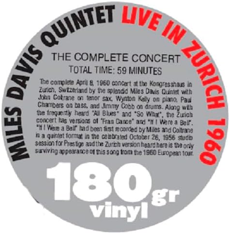 Along with the frequently heard All Blues and So What, the Zurich concert has versions of Fran Dance and If I Were a Bell, the latter having been first recorded by Miles and Coltrane in a celebrated 1956 studio session "Relaxin' With the Miles Davis Quintet" for Prestige. The Zurich version heard here is the only surviving appearance of this song from the 1960 European tour.
