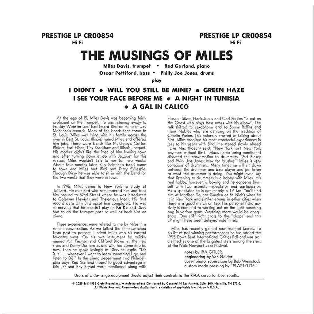 MILES DAVIS - The Musings Of Miles (Original Jazz Classics Series) - LP - Deluxe 180g Vinyl