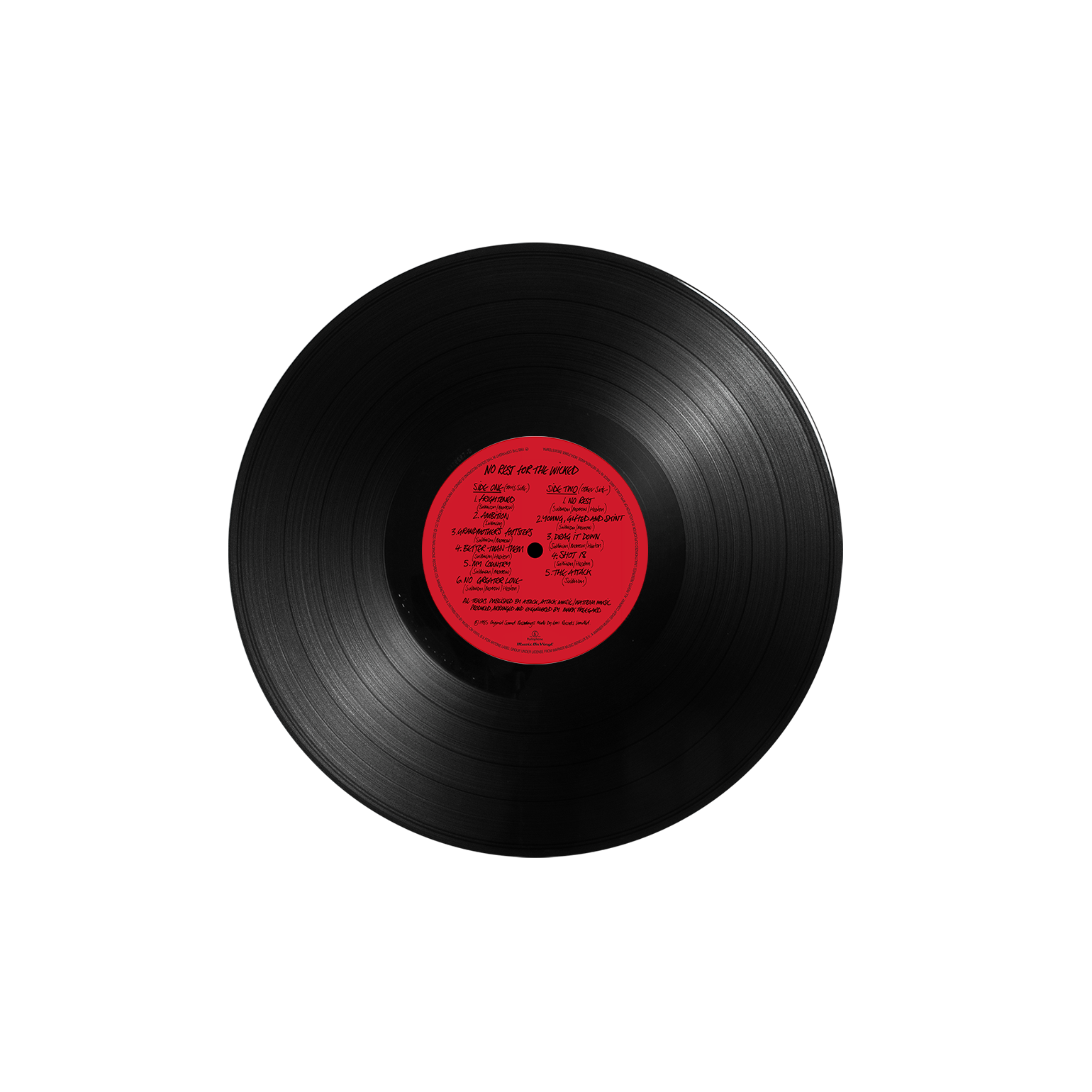 “No Rest for the Wicked” is available on black vinyl and includes an insert.