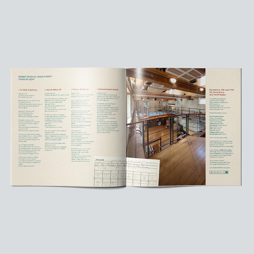 Chain of Light is an album of previously unheard recordings of the singer and his qawwal party made at Real World Studios in 1990, whilst he was at the height of his vocal capabilities. Carefully restored from the original analogue tapes, this ‘lost album’ of traditional qawwals includes a pristine recording of the much-loved classic ‘Ya Allah Ya Rehman’, as well the only known performance of ‘Ya Gaus Ya Meeran’.