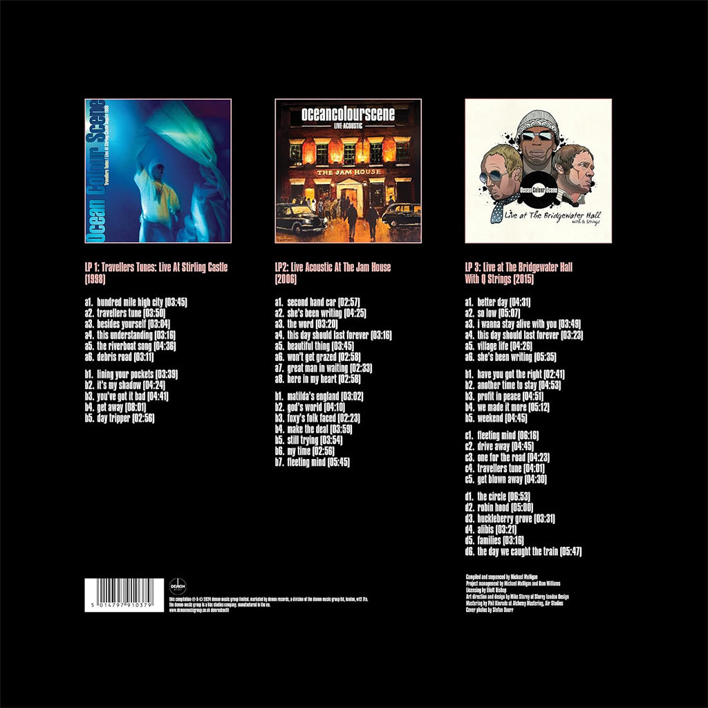 All beginnings start with a name. And so, in October 1989, Simon Fowler, Steve Cradock, Damon Minchella and Oscar Harrison sat down together, chose their three favourite words, arranged them in a satisfactory order and became Ocean Colour Scene. Thirty-five years on, and Ocean Colour Scene are still together: making music and regularly selling out huge concert halls across the country. They have the support of an extraordinarily dedicated and loyal fan base who cherish their music and hold close to their hearts a lifetime of memories supporting the group. This latest boxset continues Demon Records’ ongoing celebration of one of Britain’s finest bands and for this edition the spotlight focuses on the bands magnificent live material.