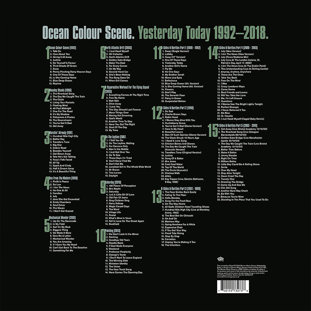This 228-track 15CD Collection is the first of its kind. A celebration of one of Britain’s finest bands. Including all of their studio albums from the self-titled debut album Ocean Colour Scene, to the chart-topping Moseley Shoals, Marchin’ Already, One For The Modern and the post Brit-pop Mechanical Wonder, North Atlantic Drift, A Hyperactive Workout For The Flying Squad, On The Leyline and the later albums Saturday and Painting.