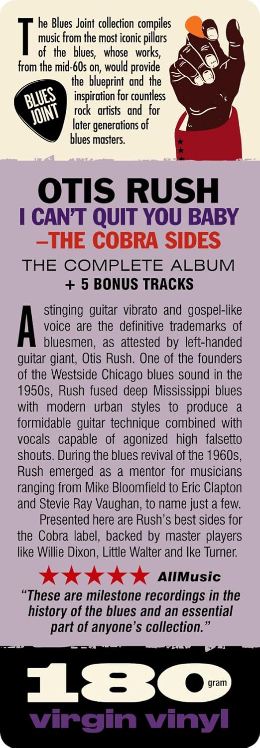 Presented here are Rush's best single sides for the Cobra label, backed by renowned players like Willie Dixon, Little Walter, and Ike Turner.