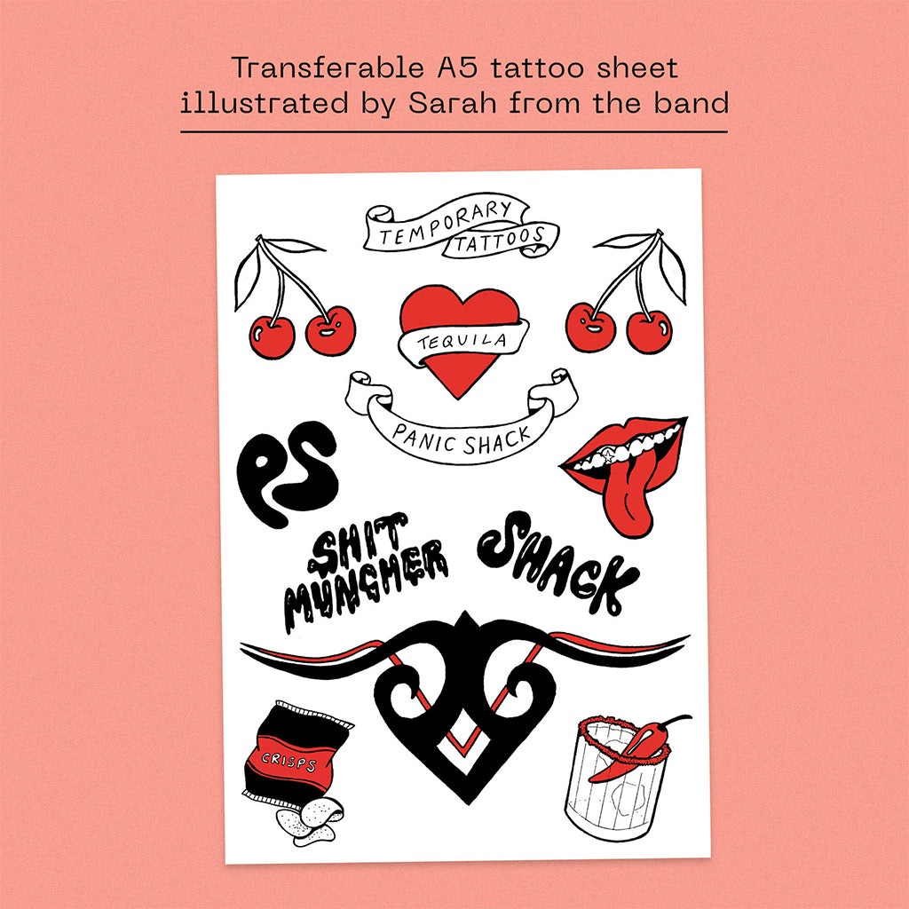 • A5 tattoo sheet (illustrated by Sarah from the band) *