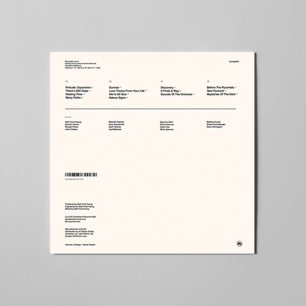 For his third long-player under the Phi-Psonics banner, Ford-Young marshalled a series of live recordings at the Healing Force Of The Universe record store in Pasadena, sculpting fourteen tracks, largely composed in the moment with a fluctuating cast of players, which wonderfully transmit his ideals of community and inner peace.