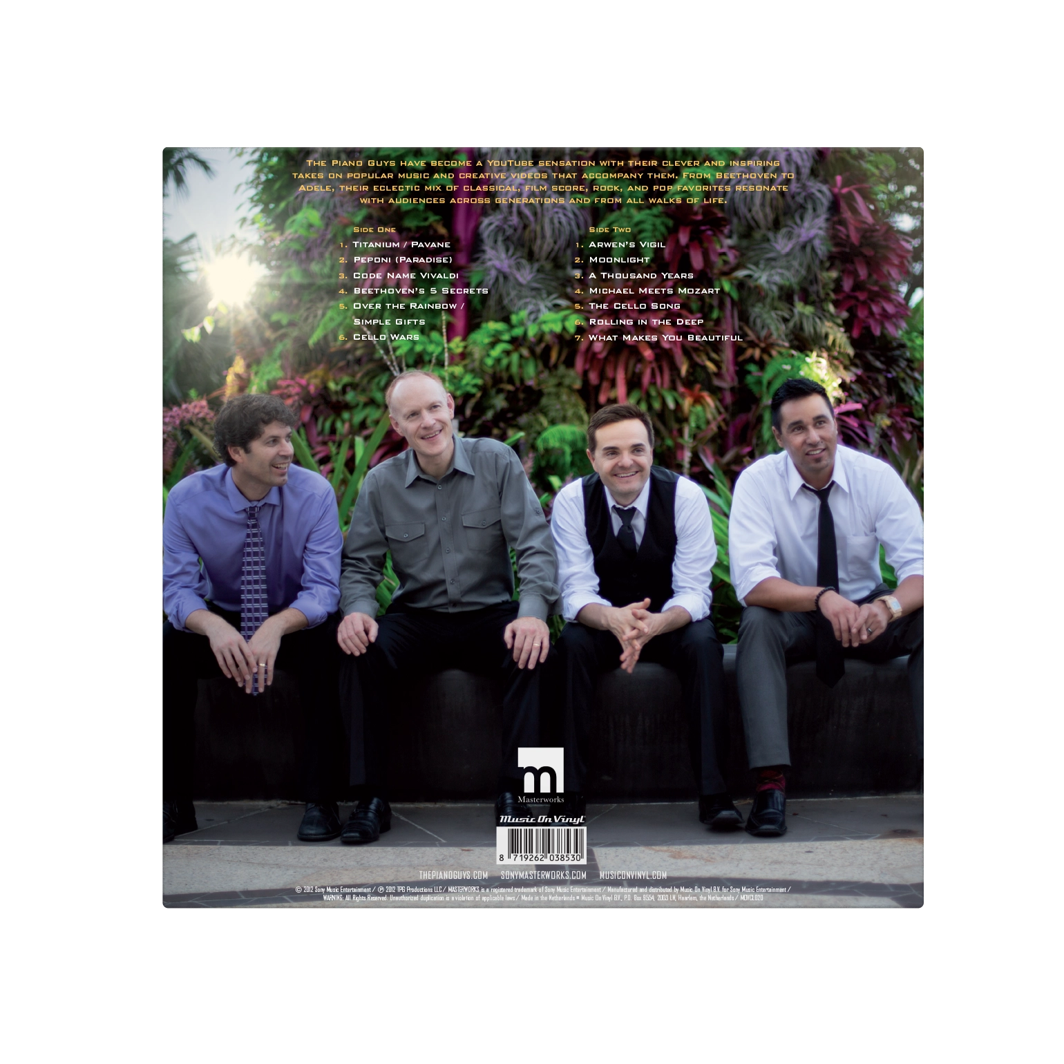 The Piano Guys is available as a limited edition of 500 individually numbered copies on gold coloured vinyl and includes a 4-page booklet with pictures.